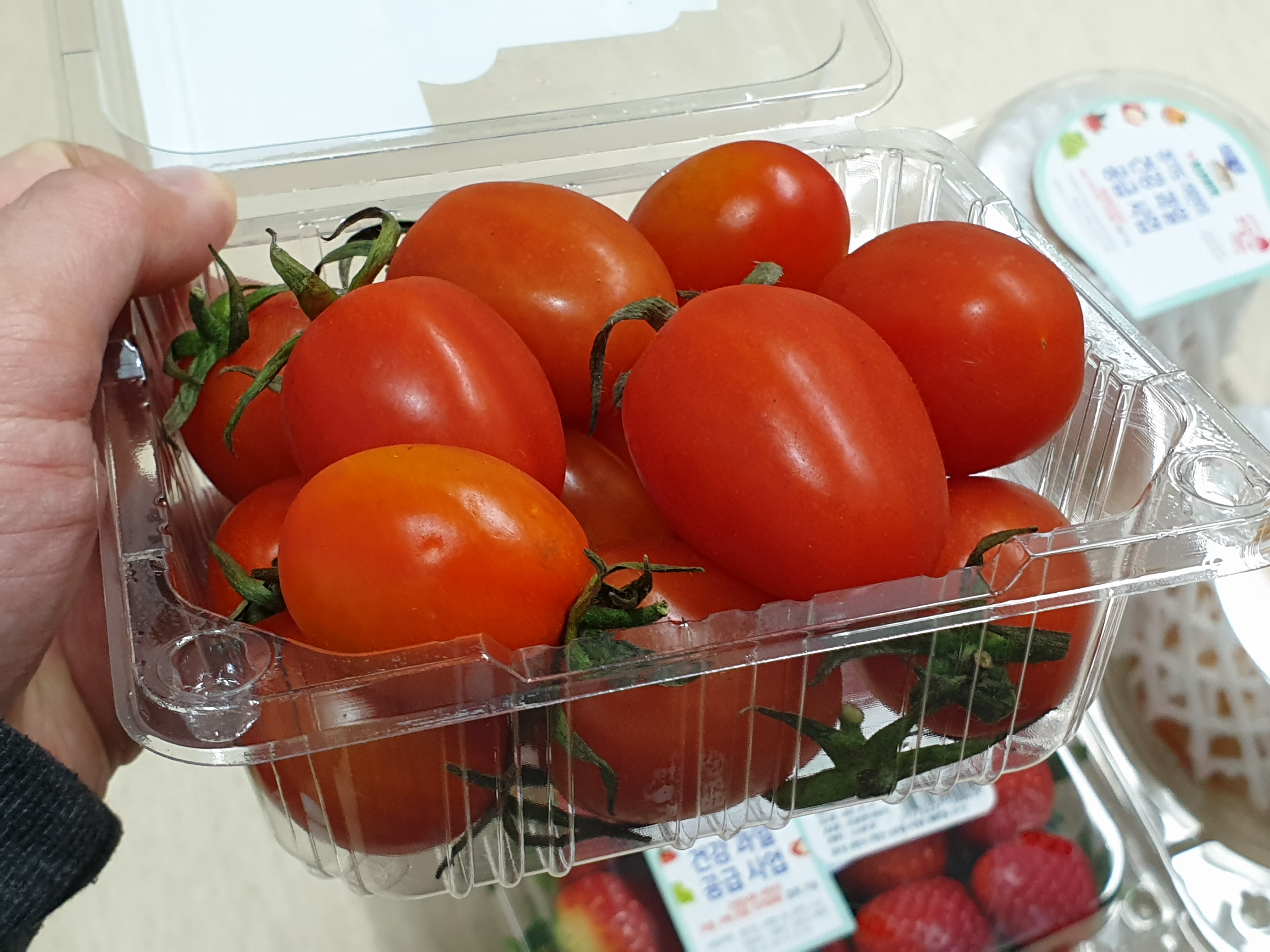 딸기 2팩, 대추방울토마토 1팩, 샤인머스캣 1팩, 배 2개..