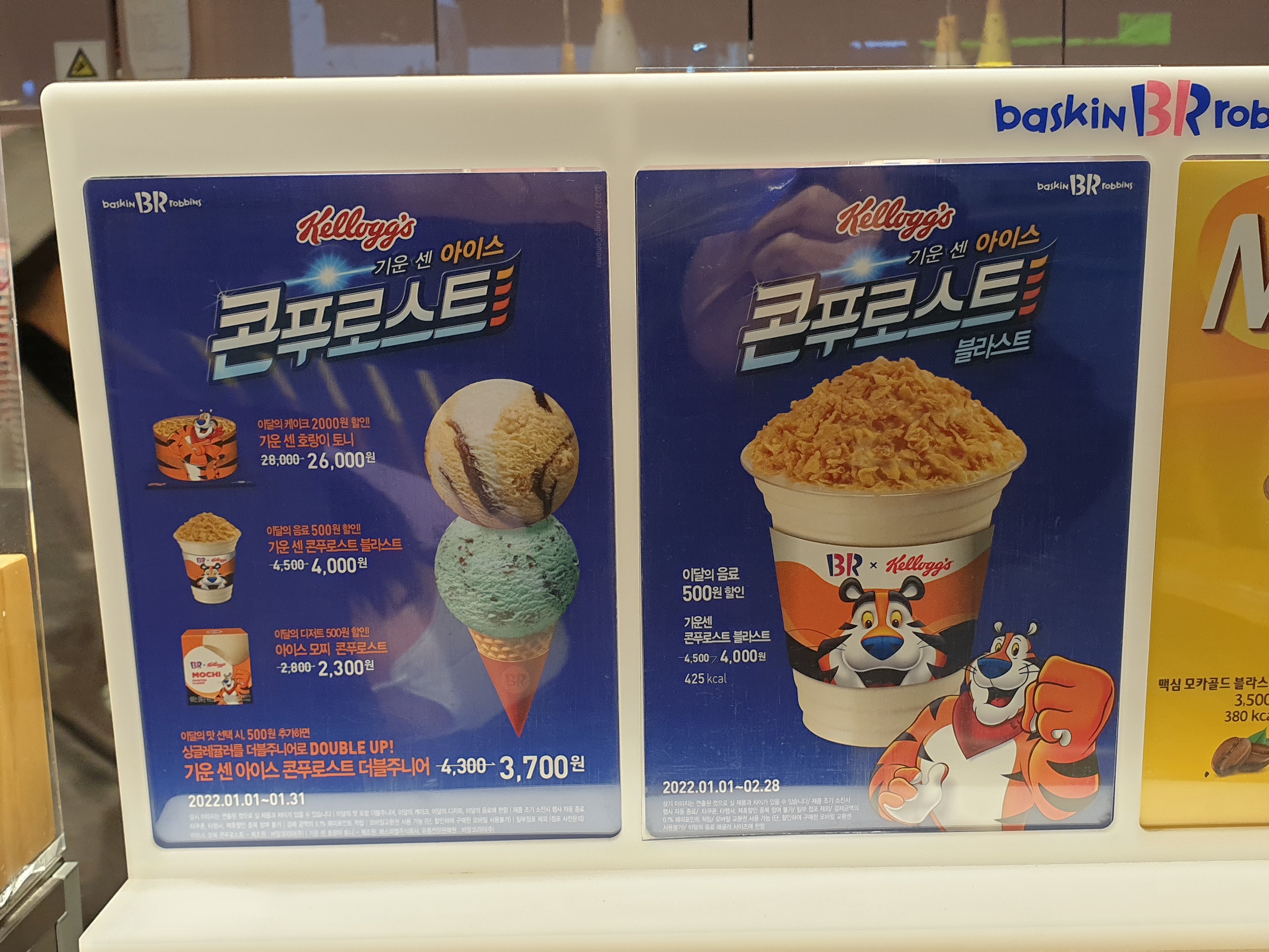 배스킨라빈스 1월 이달의맛 기운 센 아이스 콘푸로스트 입니다.