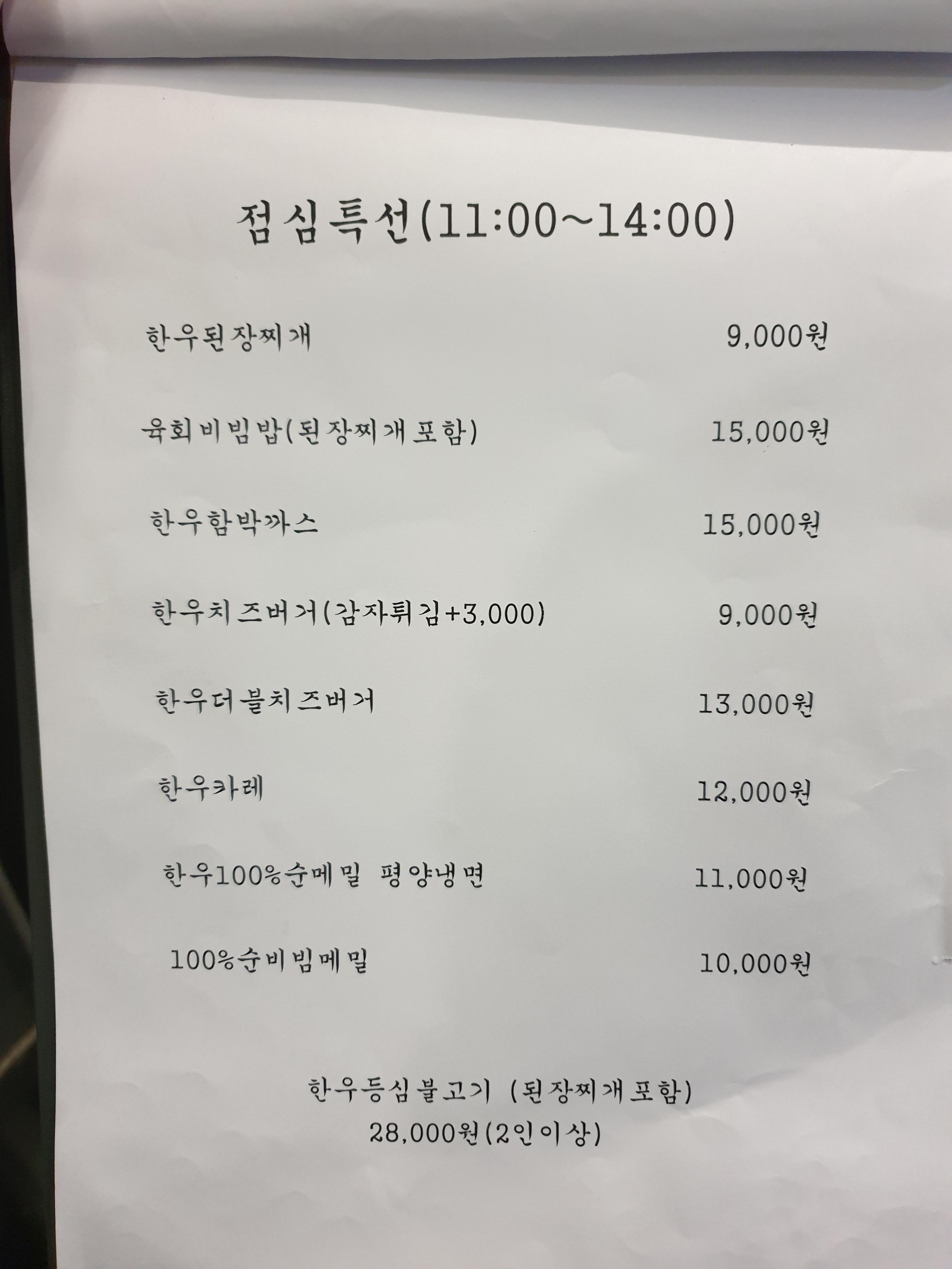 방이동 소고기 맛집 한아람 메뉴입니다.