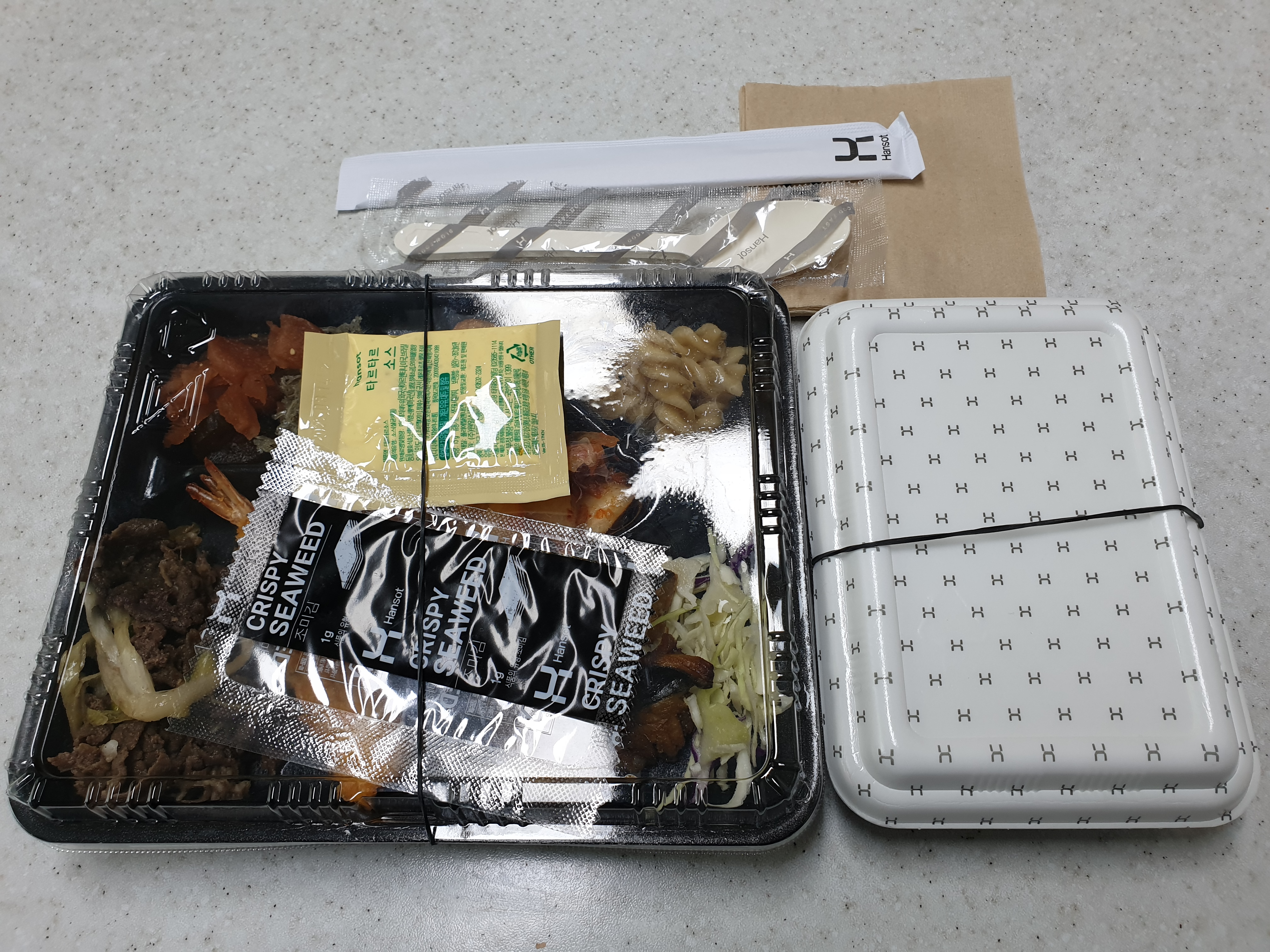 오랜만에 점심으로 한솥도시락을 배달시켜서 먹었습니다.