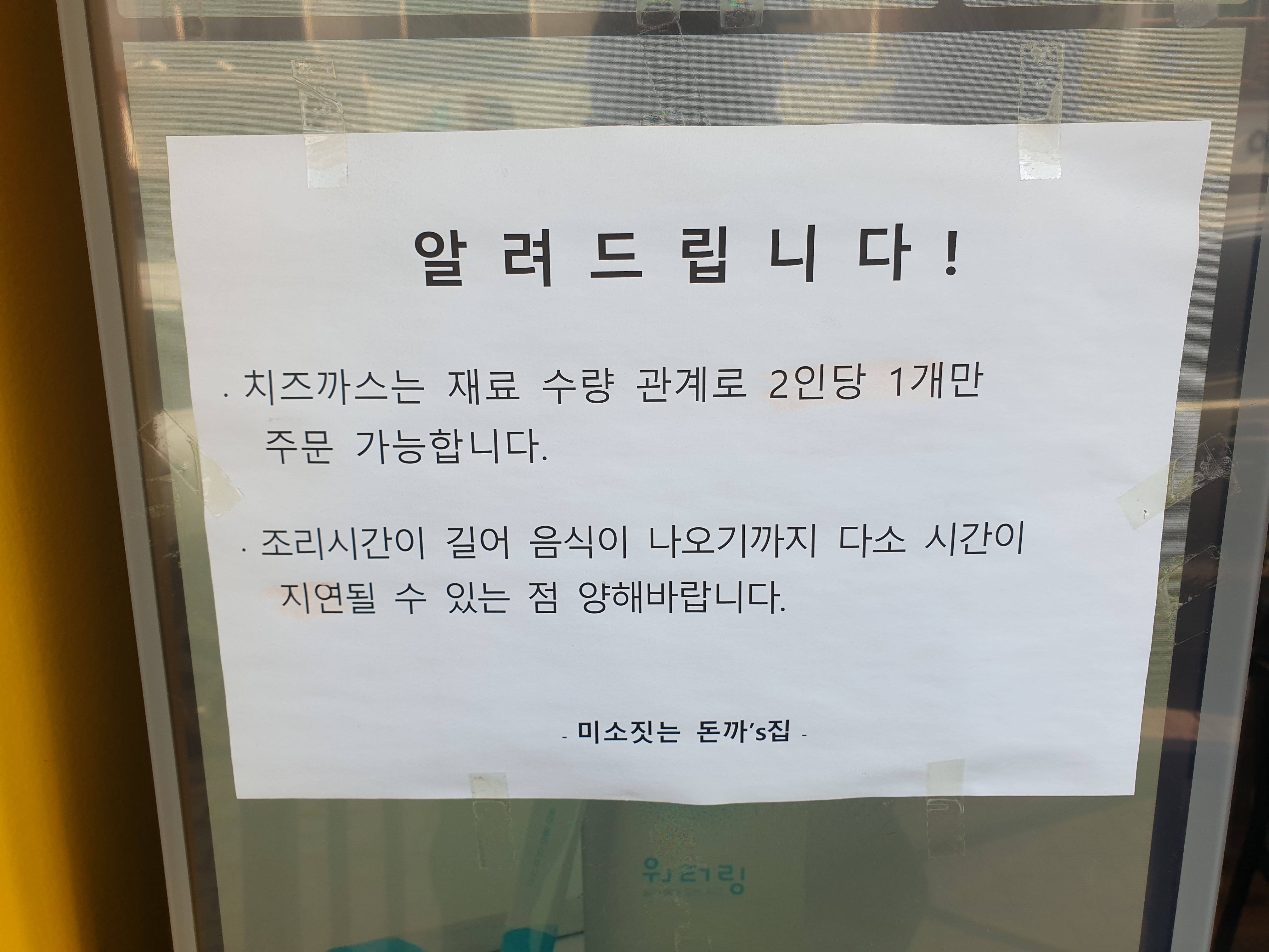 치즈까스는 재료 수량 관계로 2인당 1개만 주문 가능합니다.