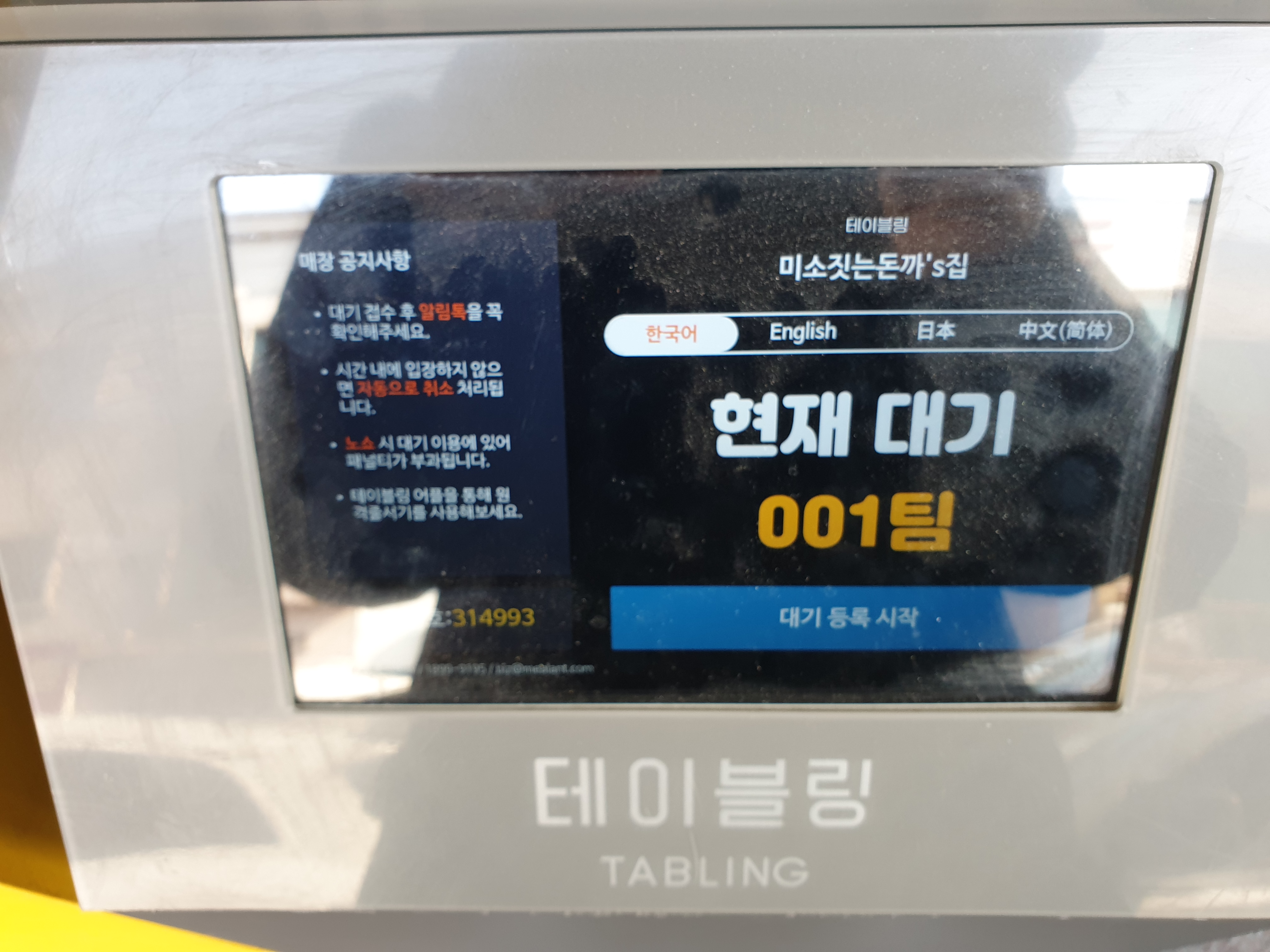 일단, 가게 앞에 있는 테이블링으로 대기 등록을 하시면 됩니다.