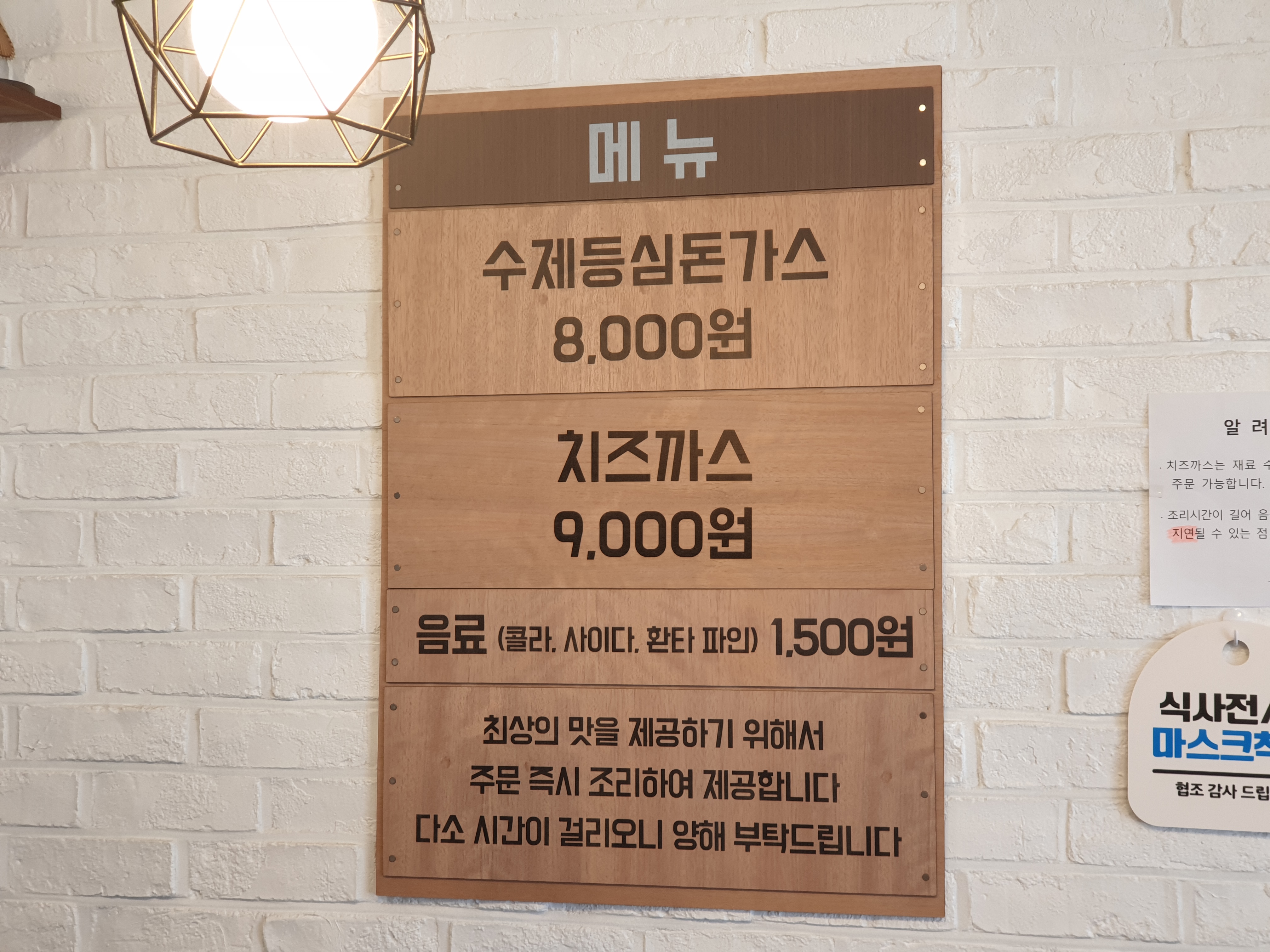 예전에는 메뉴판에 치즈까스 자리가 비워져 있었는데..