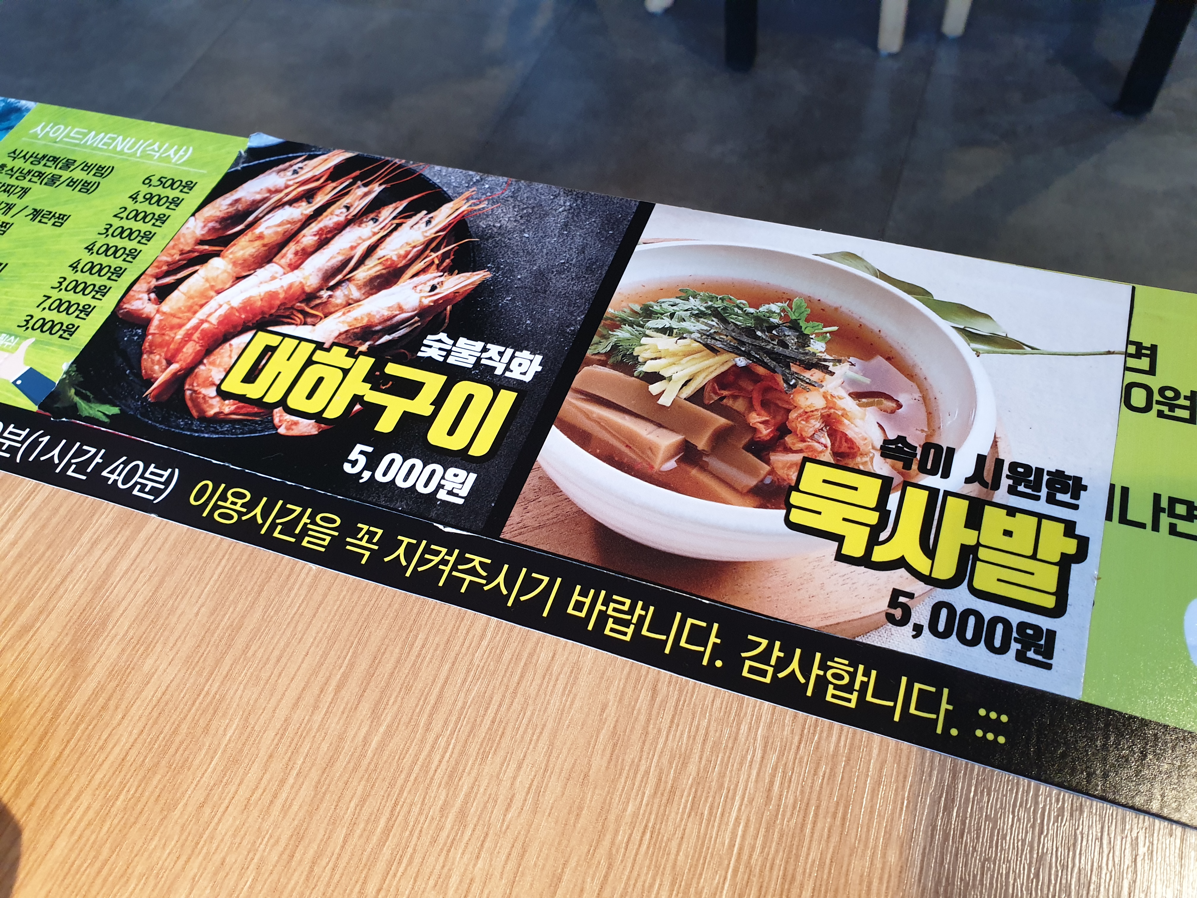 그 외에.. 대하구이와 묵사발도 있네요^^