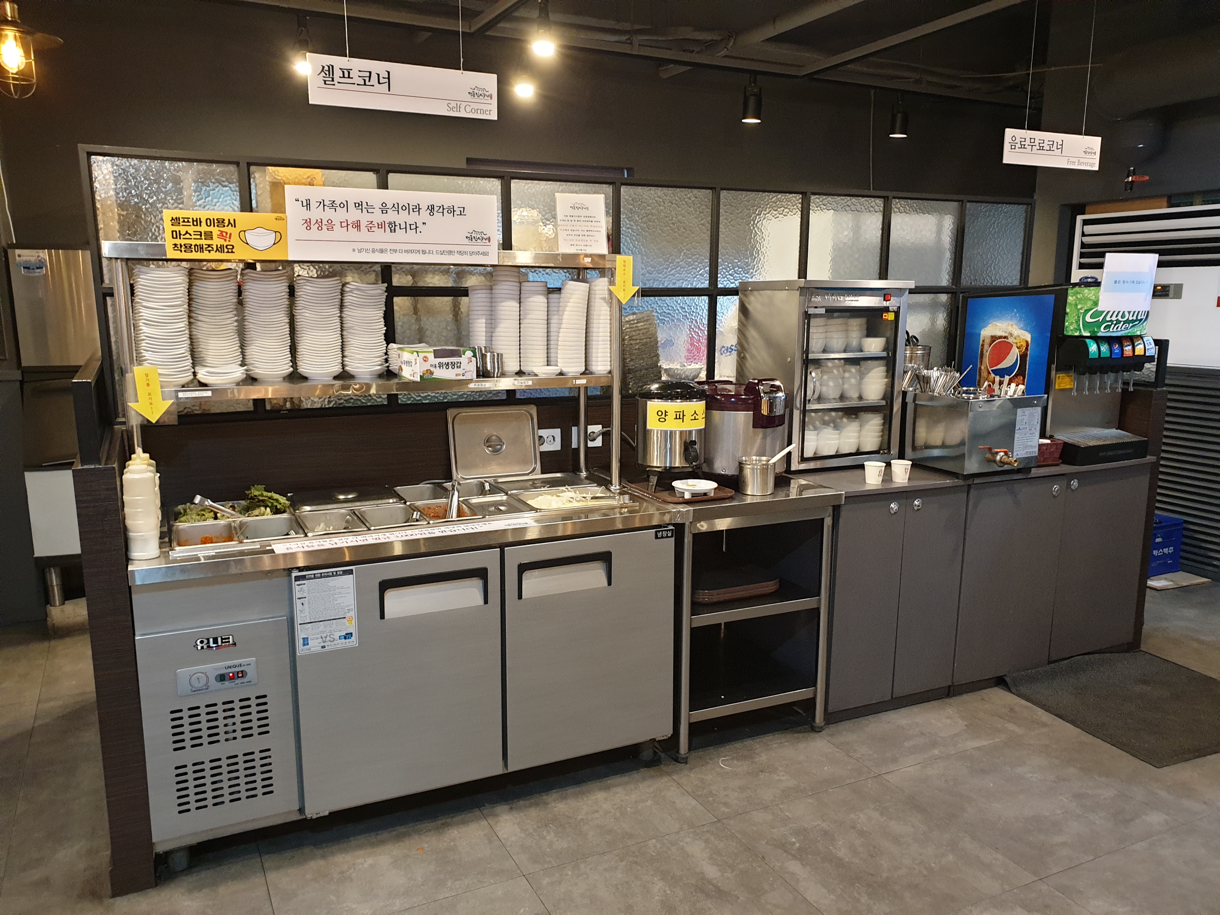 셀프코너에서 직접 가져다드시면 됩니다^^