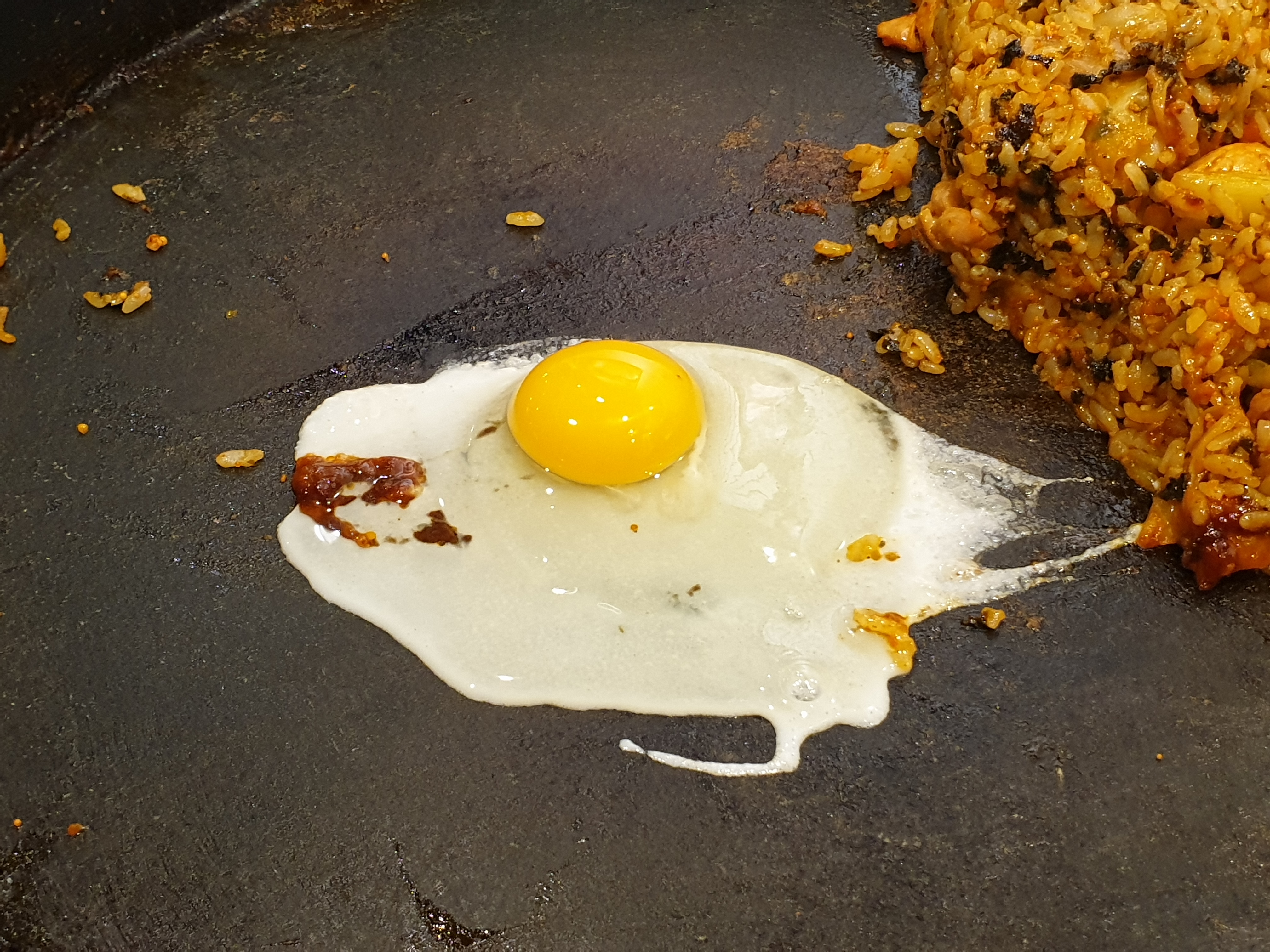 일단 밥을 다 볶은 후에.. 한쪽으로 밀어놓고..