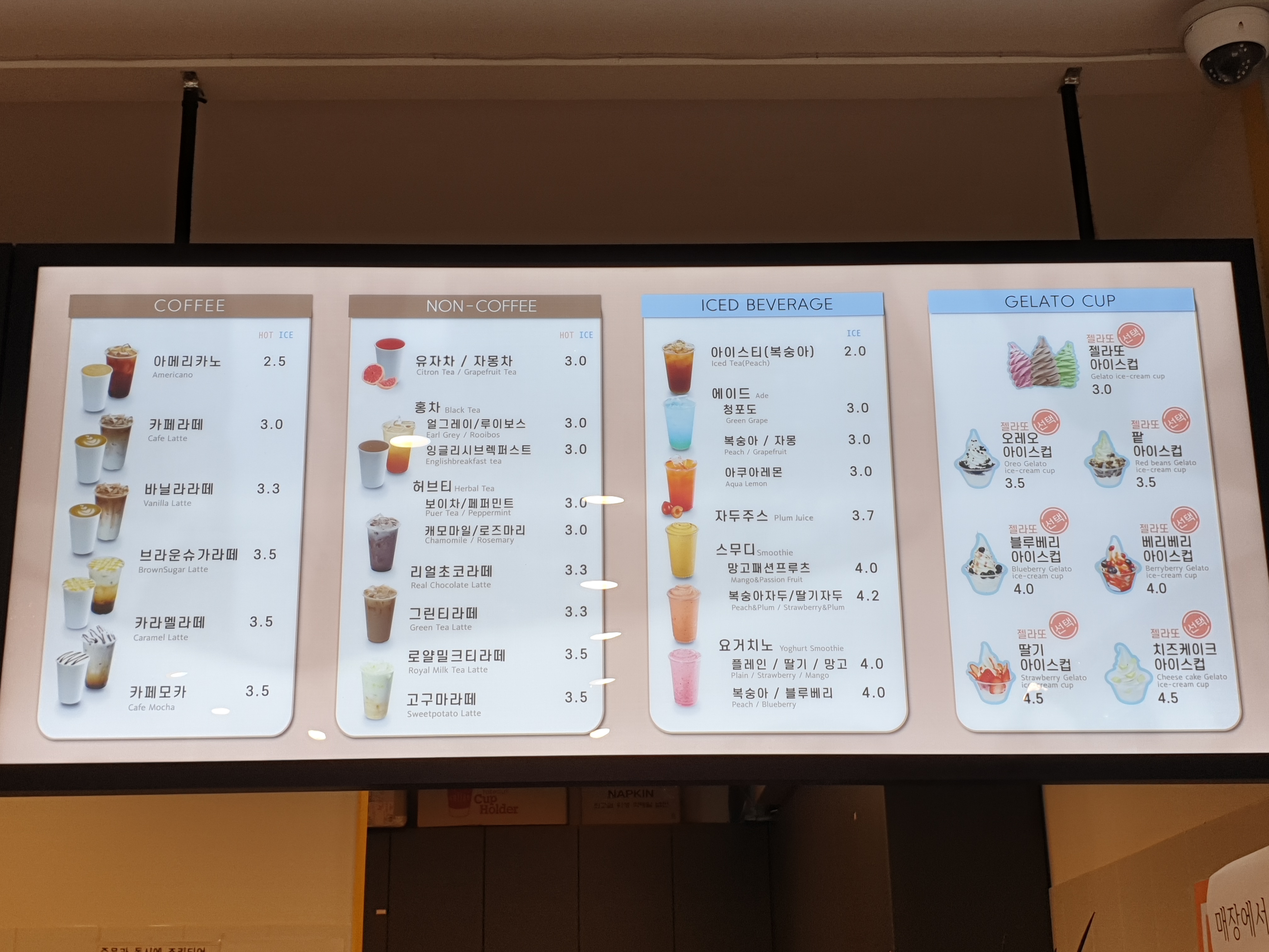 와플 외에도 커피, 음료, 젤라또아이스크림 까지..