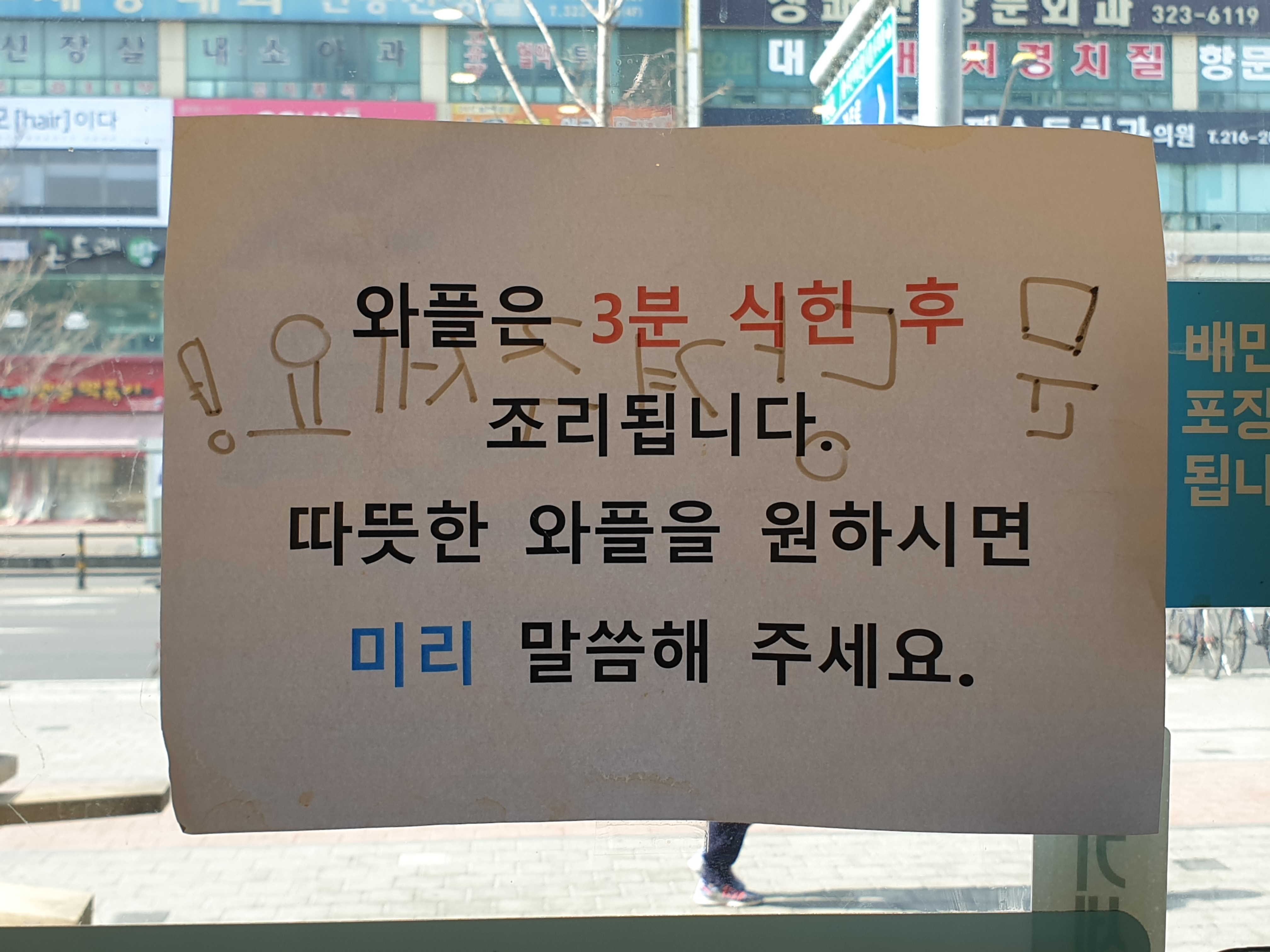 따뜻한 와플을 원하시면 미리 말씀해 주세요~