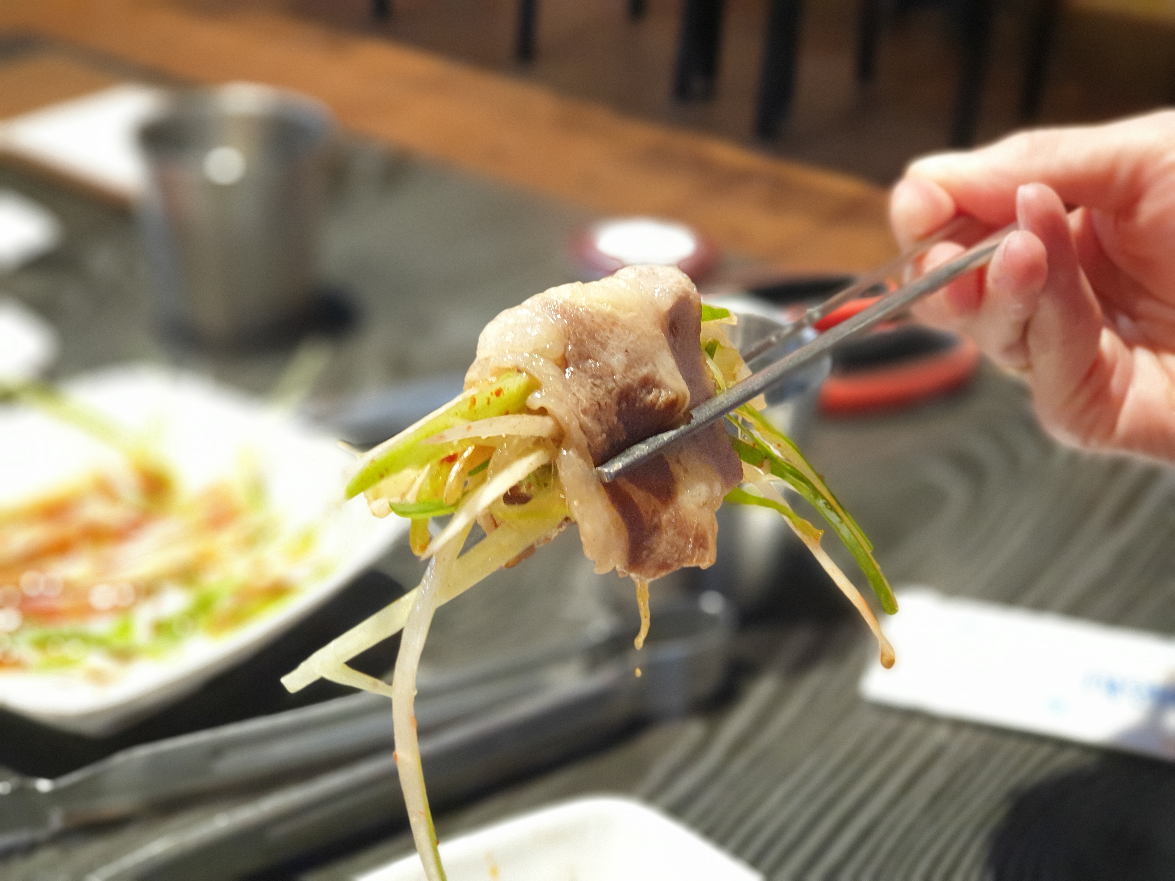 우삼겹으로 파채를 싸먹는게 은근히 맛있어서..