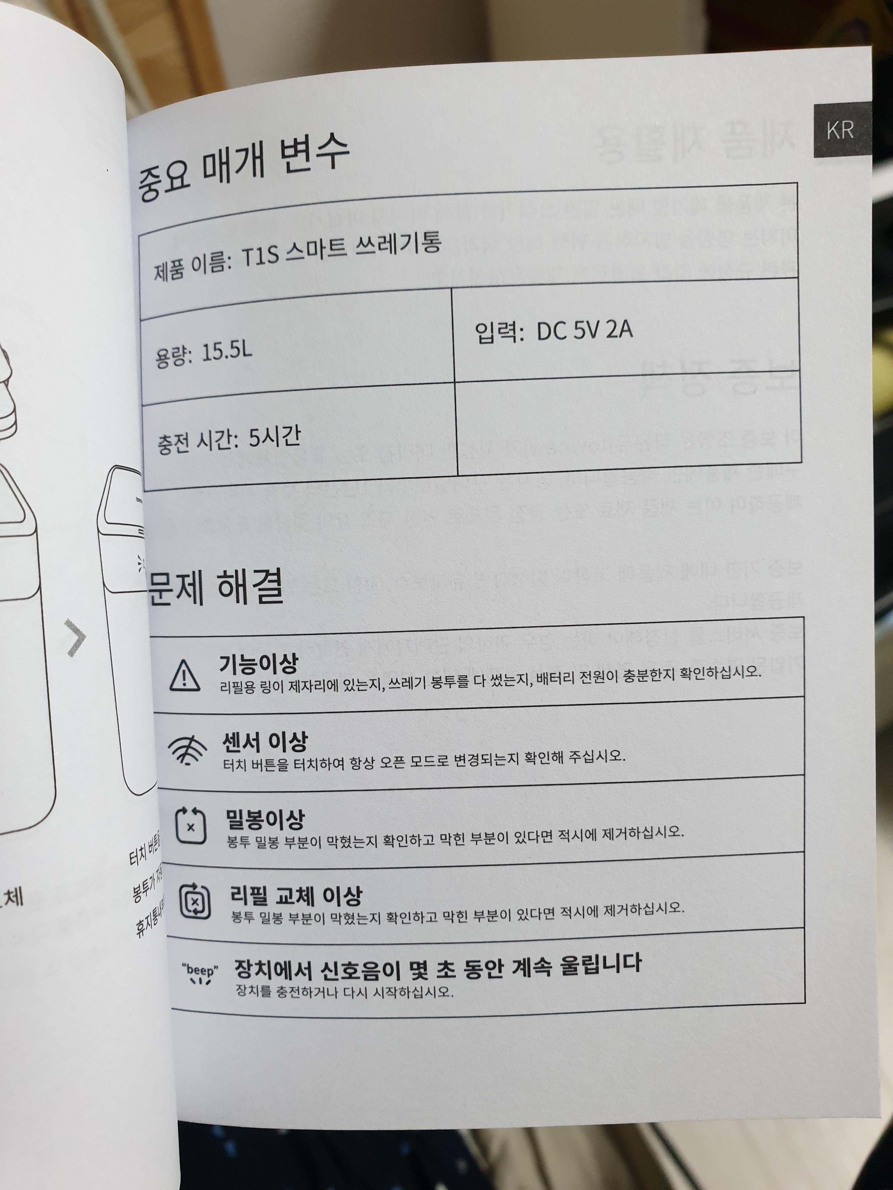샤오미 쓰레기통 토뉴 T1S 사용설명서