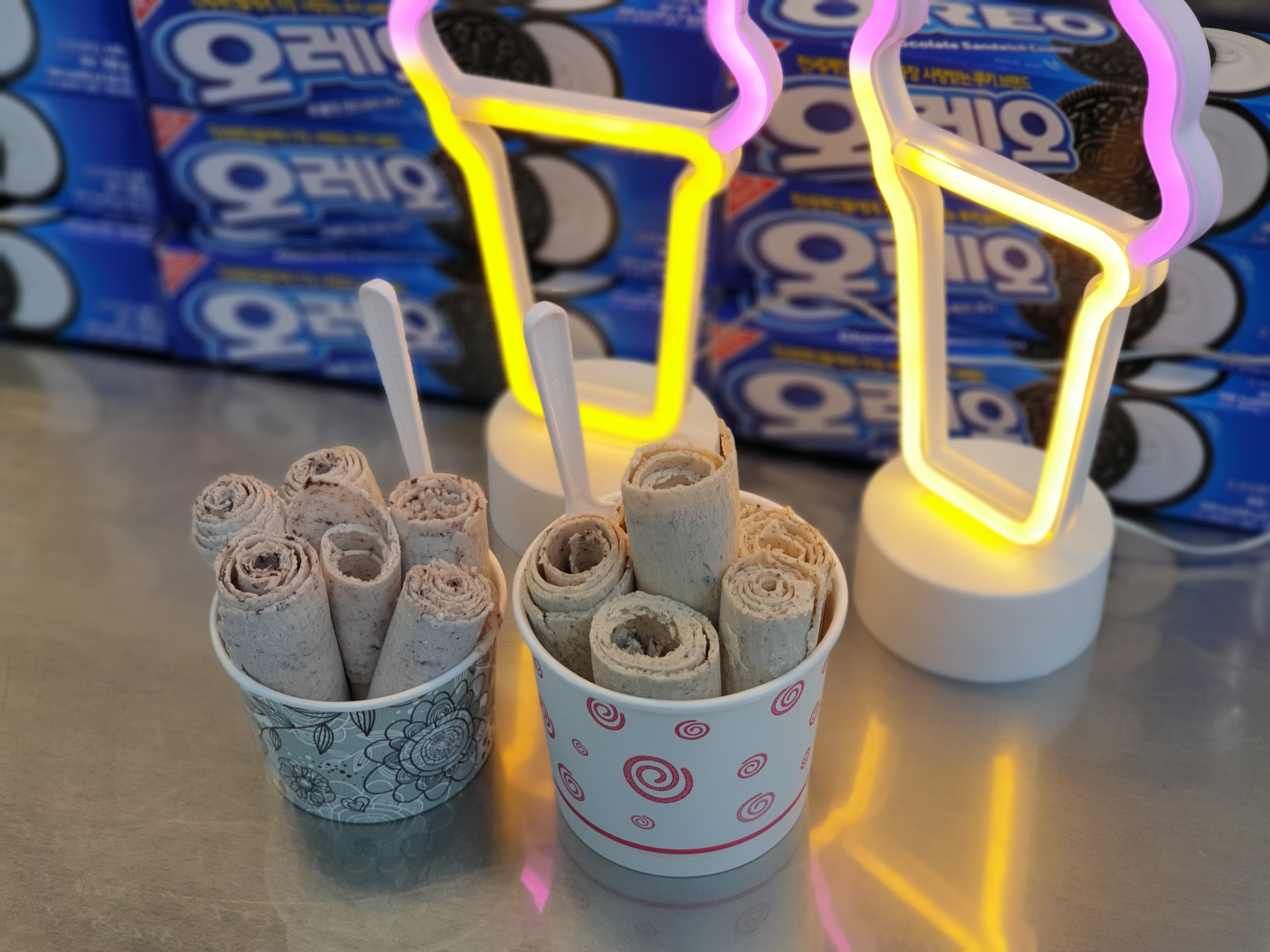 망고+오레오 그리고 기본 오레오 맛으로 골랐는데 망고랑 오레오랑 섞은건 예상했다시피 잘 어울리지 않은거 같고, 그냥 한번 먹어본걸로 되었다 싶은 맛이었어요😏