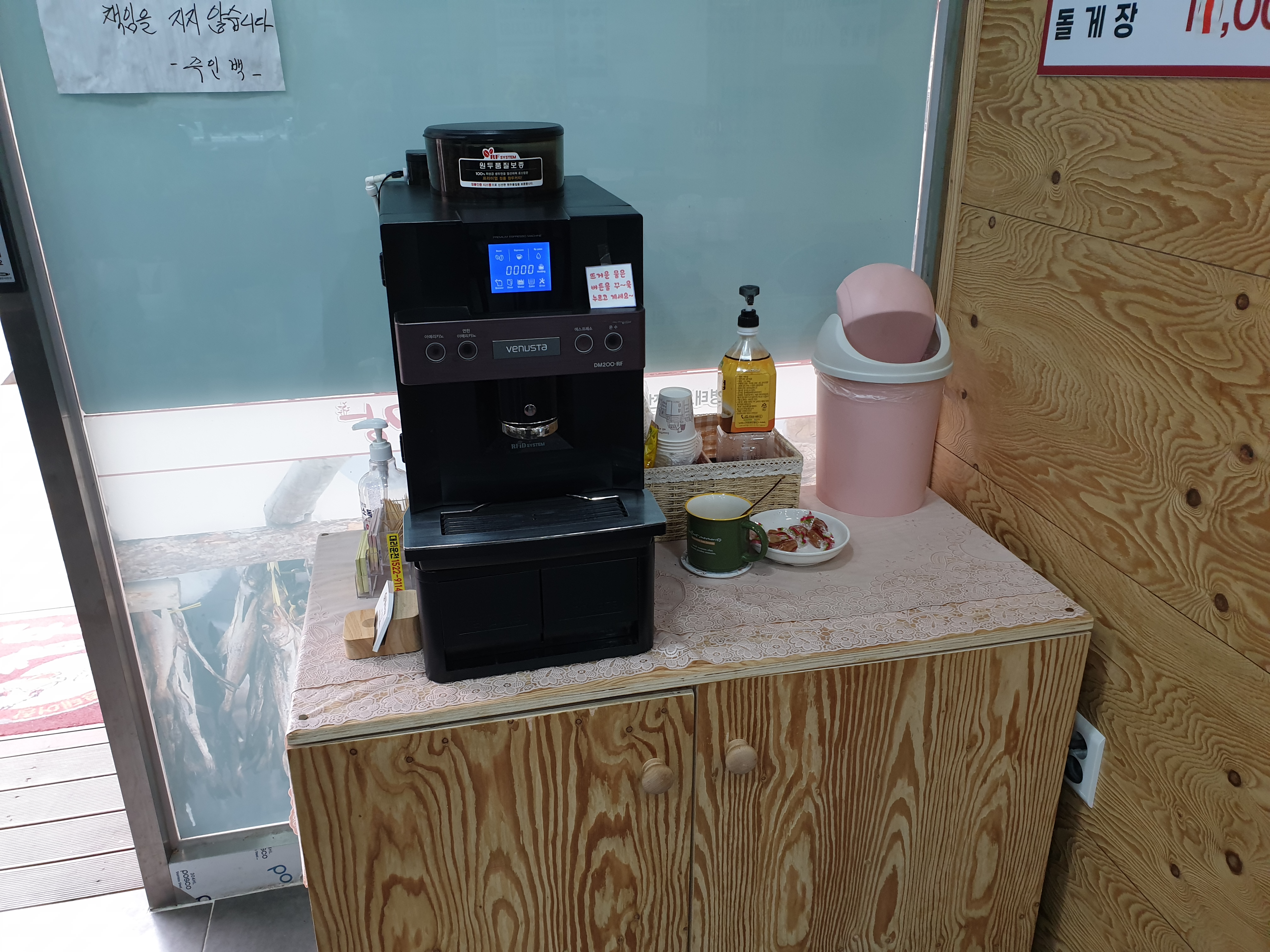후식은 커피머신으로 아메리카노 드셔도 좋고 믹스도 준비 되어있었구요.