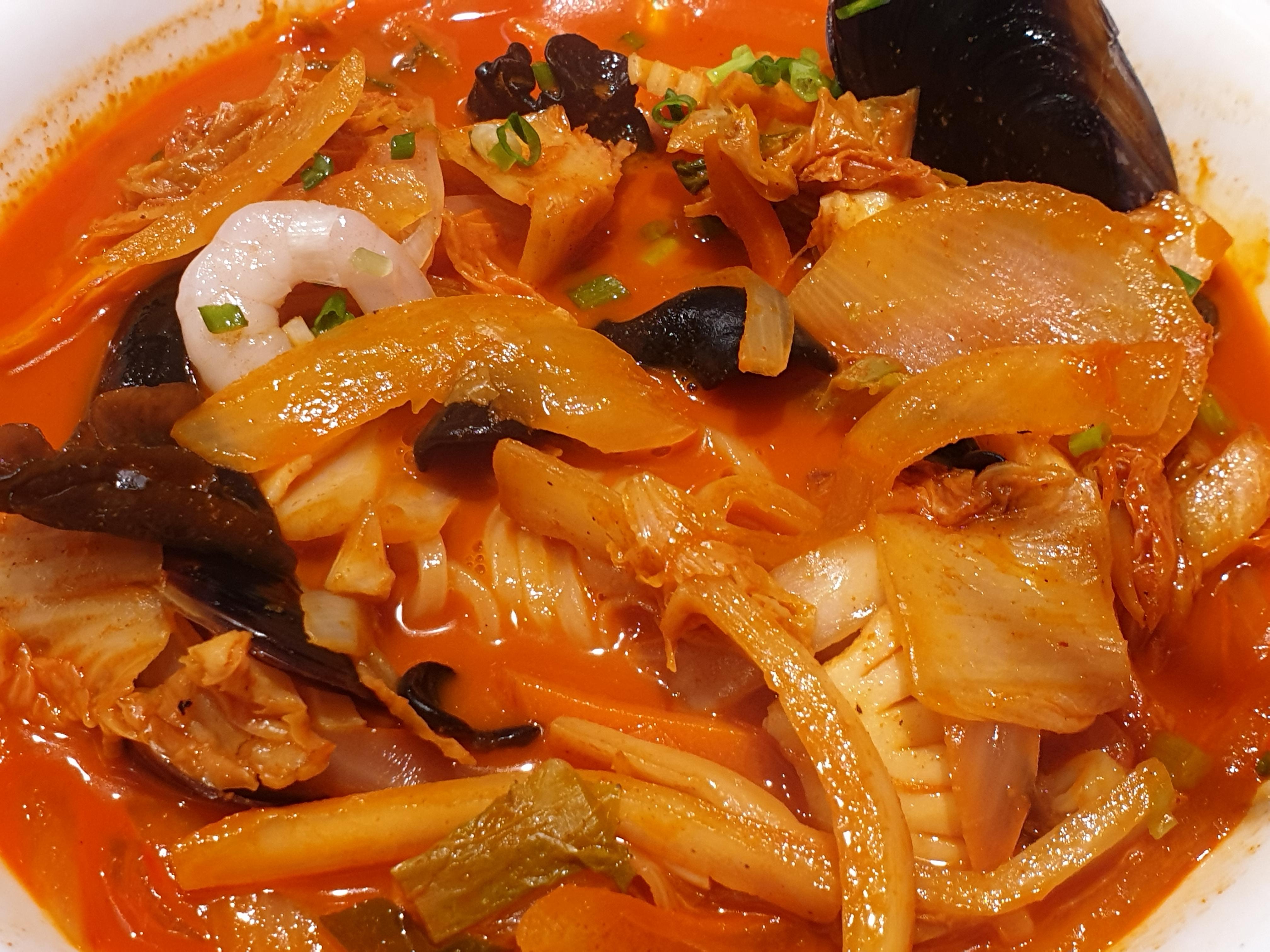 새우 하나와 홍합 하나를 위에 올리고 쪽파 솔솔 뿌려진 비주얼이예요~~