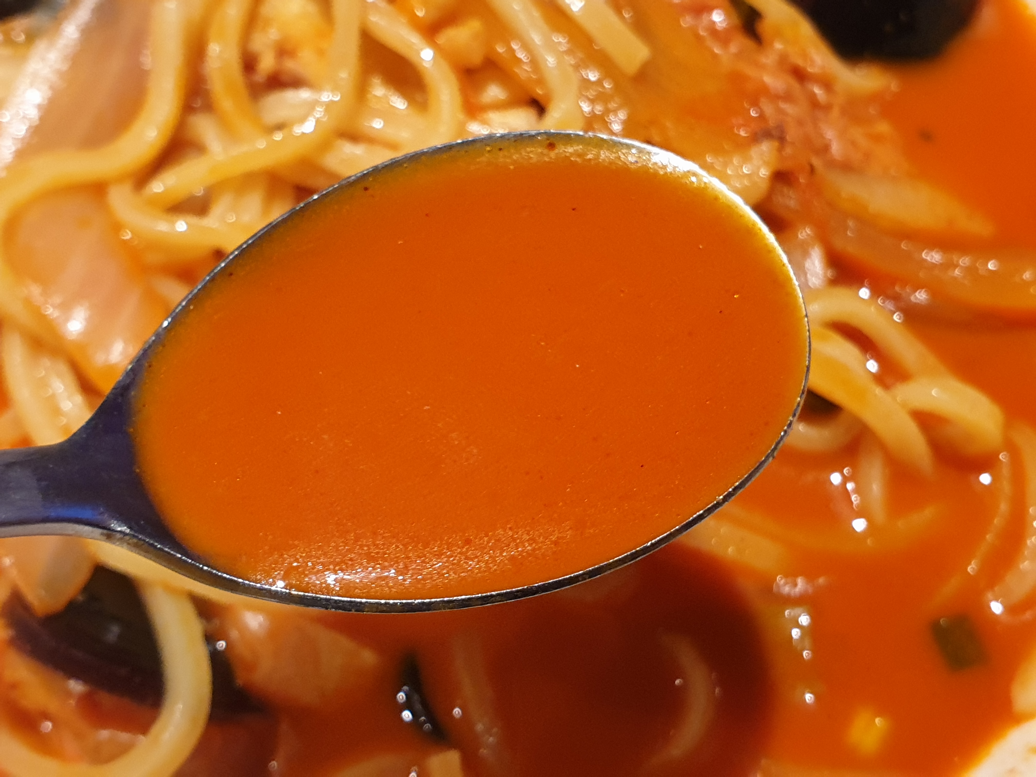 국물은 얼큰한 김치라면 느낌이 나는 짬뽕맛이었어요~