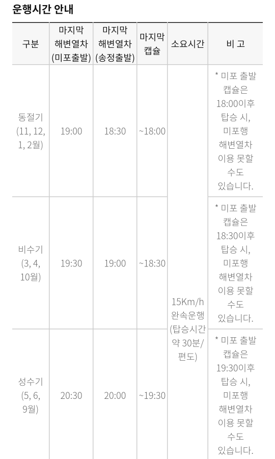 처음 알아볼때 정거장도 많고 해변열차는 뭐고 캡슐은 또 뭐냐며 너무 복잡했는데 한번 타보니 어려울거 하나도 없더라구요~~
