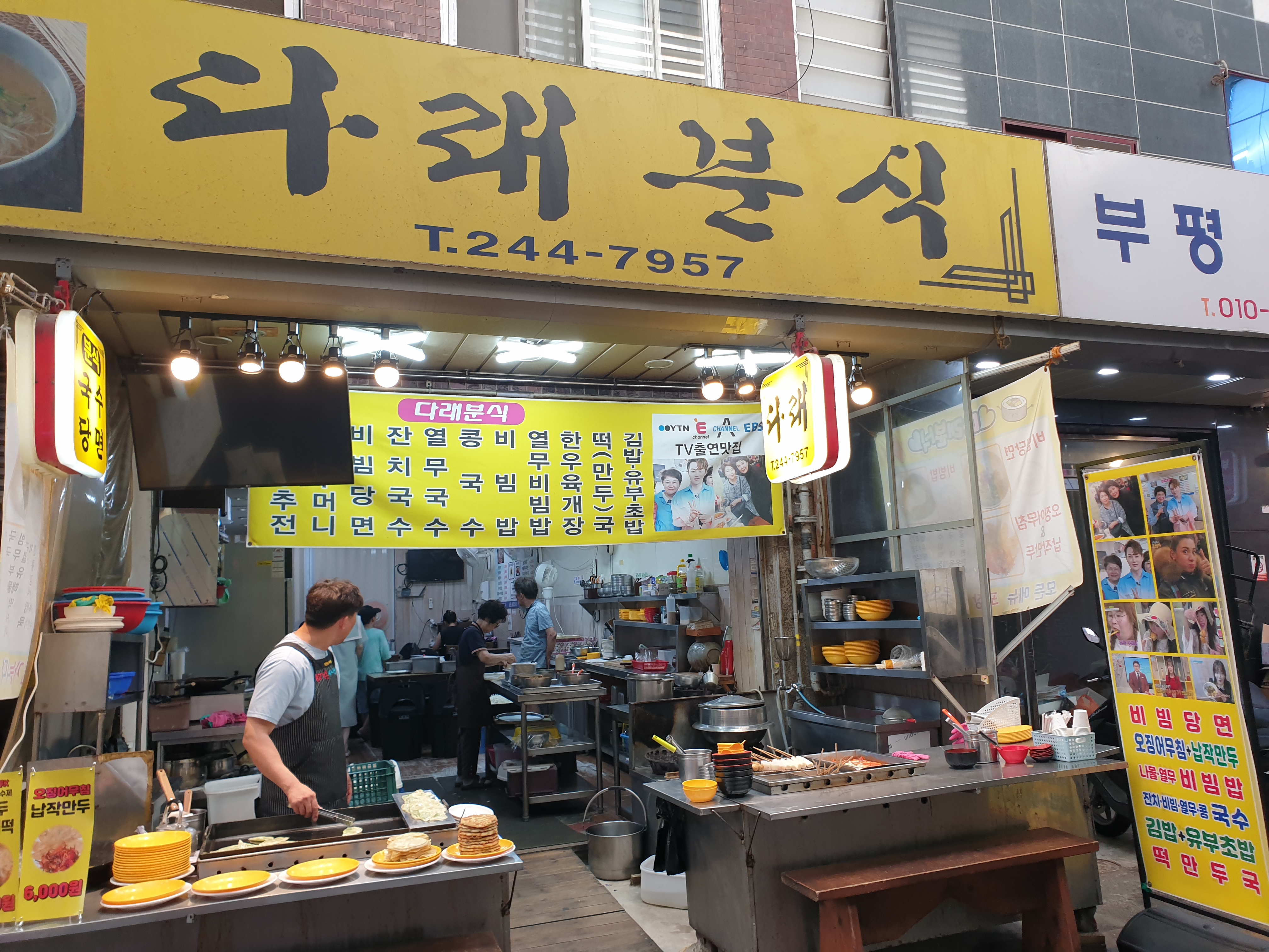 정확히 말하면 국제시장이 아니라 부평깡통시장에 위치하고 있어요!!